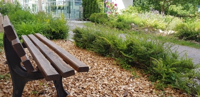 Die gemütliche Bank, an der Klostermauer, lädt ein sich Zeit zu nehmen um nach Vögel und Insekten zu lauschen.